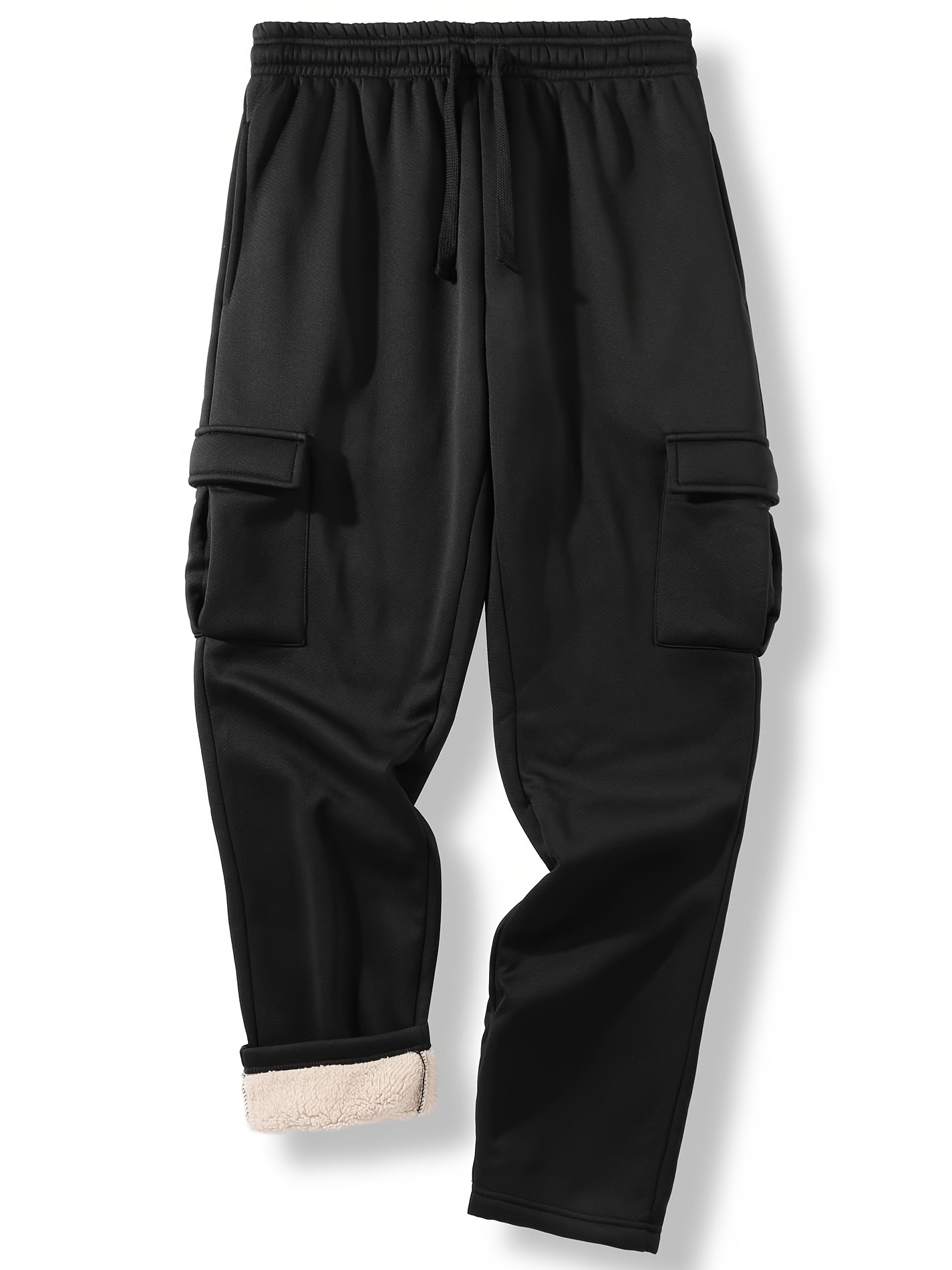 Fleece Lined Drawstring Sweatpants Loose Fit Pants Men's Casual Slightly Stretch Joggers For Spring Autumn Running Jogging